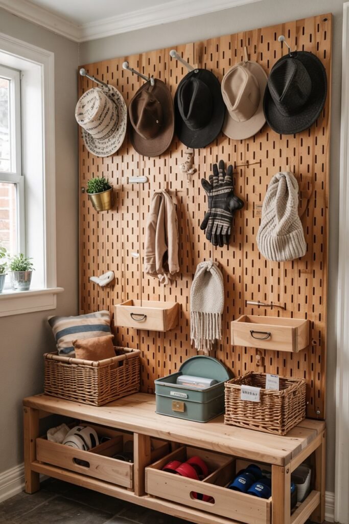 A pegboard is a versatile and customizable storage solution. I installed one in my mudroom and use various hooks and small baskets to hang hats, scarves, and gloves.