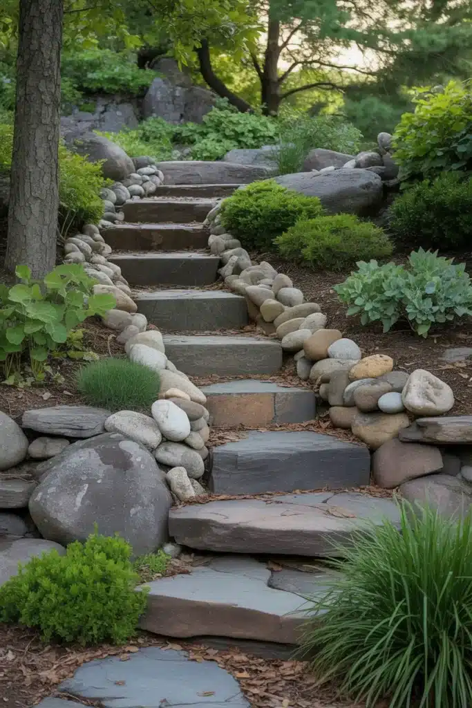 Large boulders can anchor plantings and provide microclimates for different plants. I’ve noticed that rocks retain heat and create warmer spots for plants that need extra protection. Arrange stones in odd-numbered groupings to mimic natural rock outcroppings.
