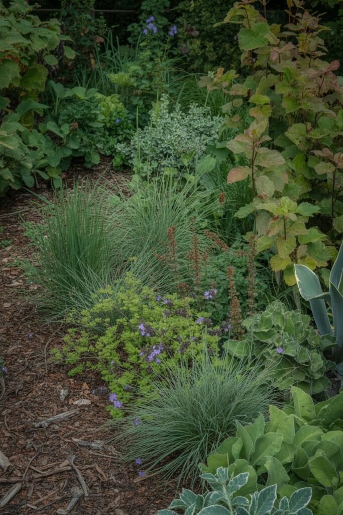 Mixed plantings of grasses, wildflowers, and small shrubs create natural-looking borders. These edge areas often receive more sunlight and can support a wider variety of plants. I use them to extend the garden’s seasonal interest and create habitat diversity.