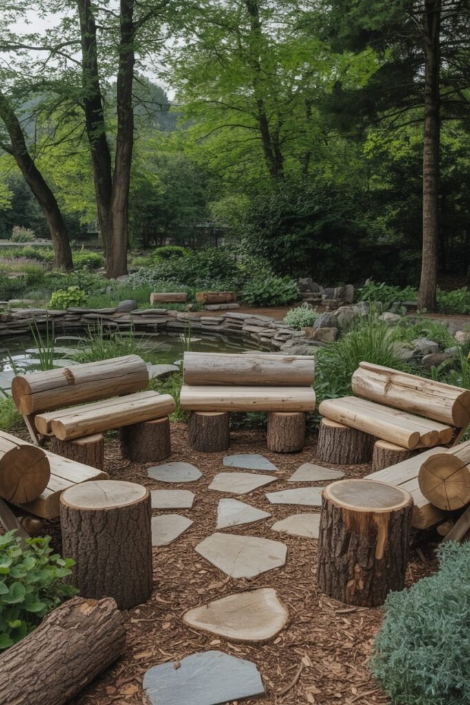 5. Install Rustic Log Seating Areas
